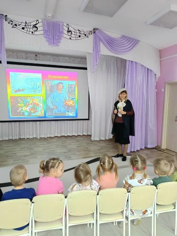 В этот день воспитанники младших групп узнали много интересного о профессии художника. Они с удовольствием посмотрели презентацию о художниках, рассматривали портреты, пейзажи и натюрморты.